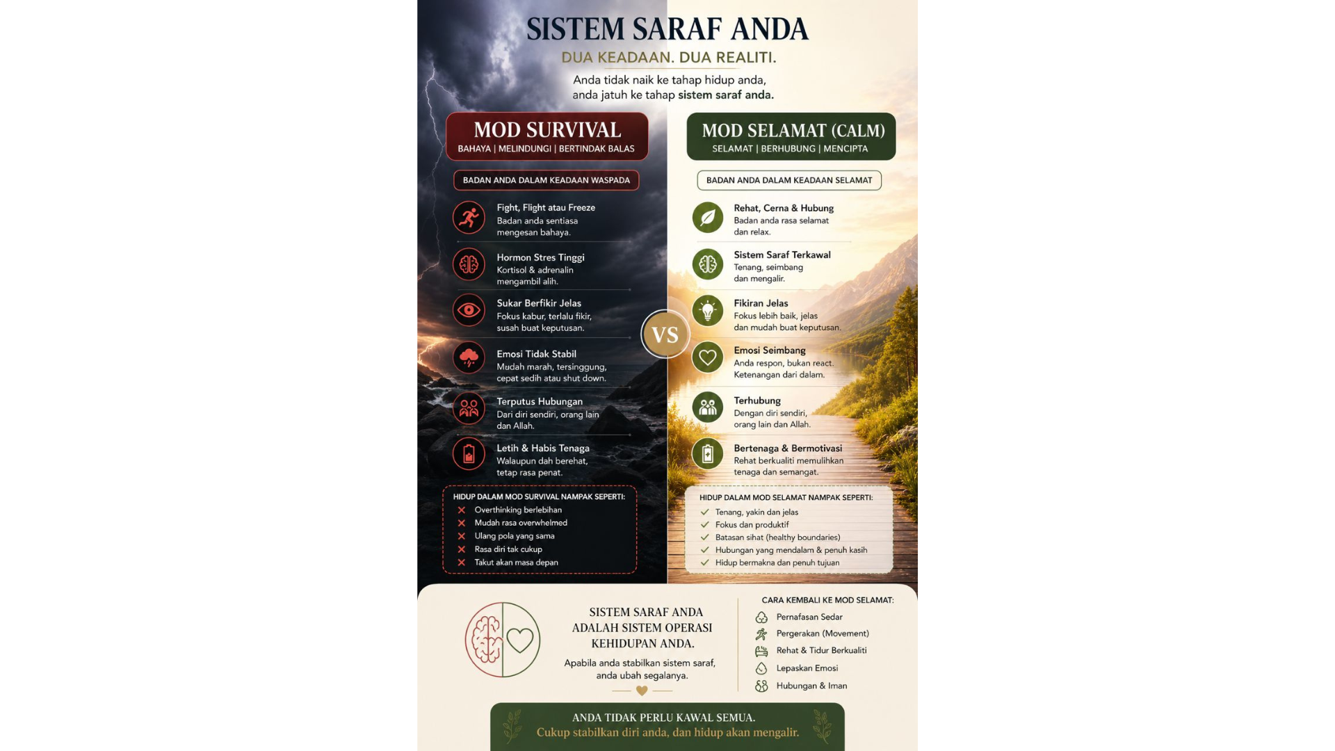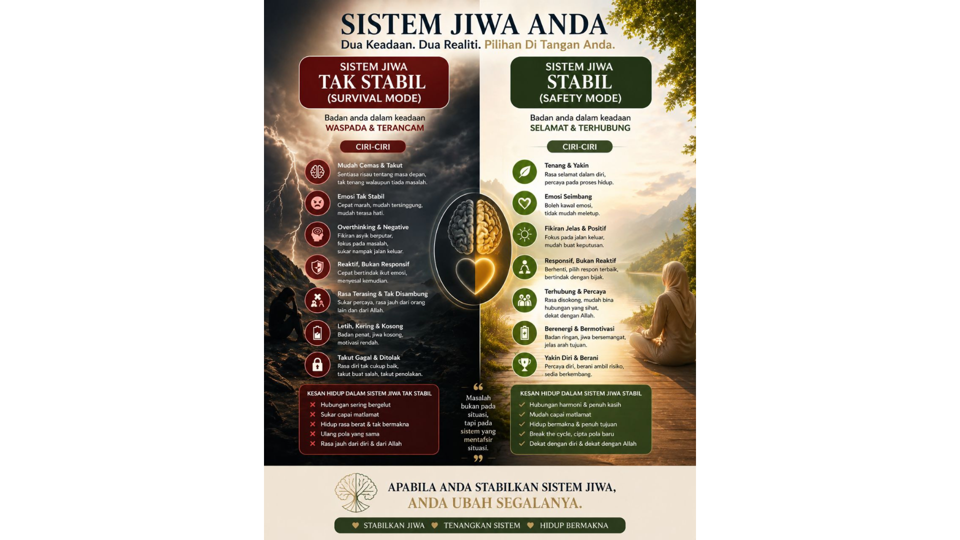 Assalamualaikum saya nak share bila dengar 30 hati Sistem jiwa stabil hati jadi lebih - tak mudah tergugat dengan hal - hal kecil tak mudah rasa gelisah atau was-was Emosi jadi lebih terkawal - tak mudah marah tak mudah sedih berlebihan boleh fikir dengan kepala dingin bila ada Masalah Rasa selesai dengan diri sendiri - rasa layak rasa tenang rasa damai dari dalam bukan sebab luaran Boleh terima apa saja dengan hati trbuka - rezeki banyak atau sikit senang atau susah sebab tahu diri kita kuat Dan berhak bahagia..rasa lebih yakin Dan stabil dari dalam.. Alhamdulillah terima kasih bonda team bonda...